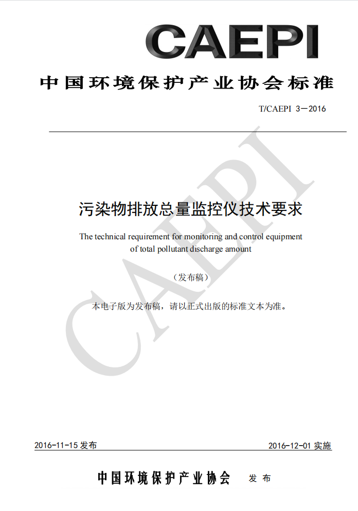 污染物排放总量监控仪技术要求(T/CAEPI 3-2016)