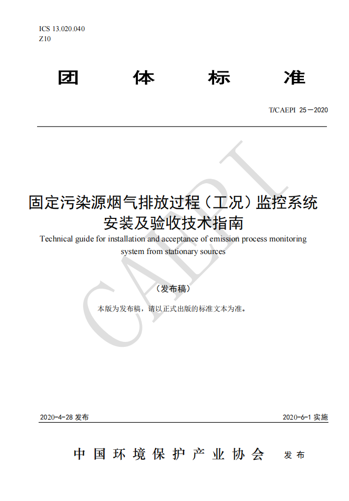 固定污染源烟气排放过程(工况)监控系统安装及验收技术指南(T/CAEPI 25-2020)