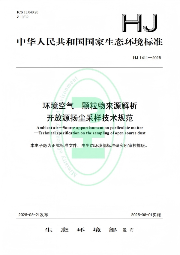 环境空气 颗粒物来源解析 开放源扬尘采样技术规范(HJ 1411—2025)