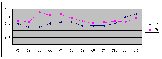 由于测试条件限制,风速仪测到的测试结果只能反映气流速度的大小,不能反映气流速度的方向,从现场观察到的情况来看,进风通道对侧的气流方向整体比较一致,从该侧测到的风速结果基本上是表示上升气流的速度大小。由于气流中存在很强的湍流和比较大的涡,因此在测定风速时,风速仪测到的读数在同一个测点的变化比较大,上表中测到的结果是风速仪读数的平均值,测试时中间位置(C6,C7)的读数最大值在10m/s以上,仪表读数极值大于13m/s,气固两相流以同样的高速冲向除尘器中箱体中的局部滤袋,而两端的最小读数在1m/s左右。