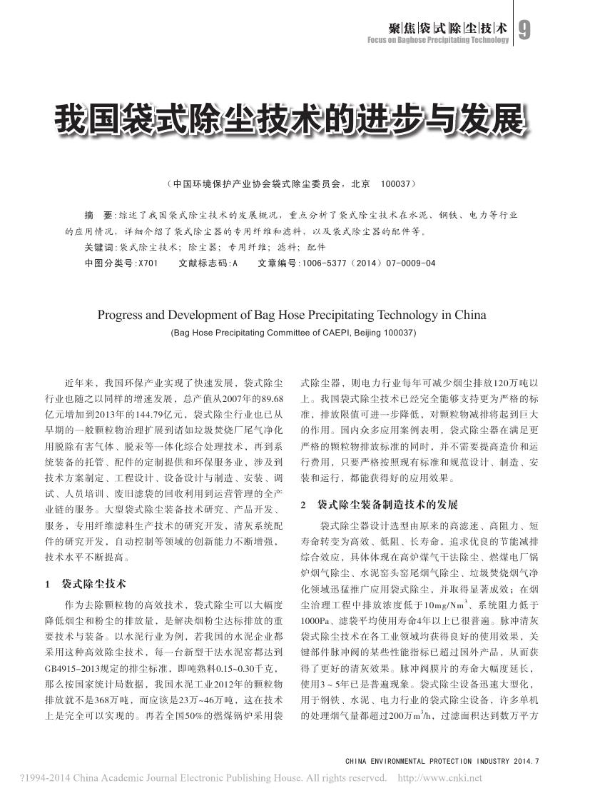 我国袋式除尘技术的进步与发展