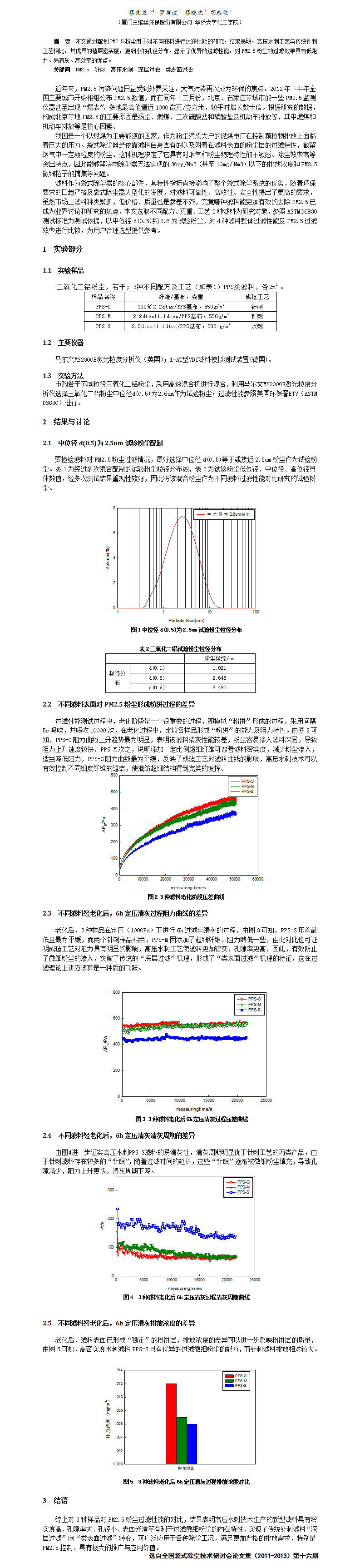 不同滤料对PM2.5粉尘过滤性能的比较
