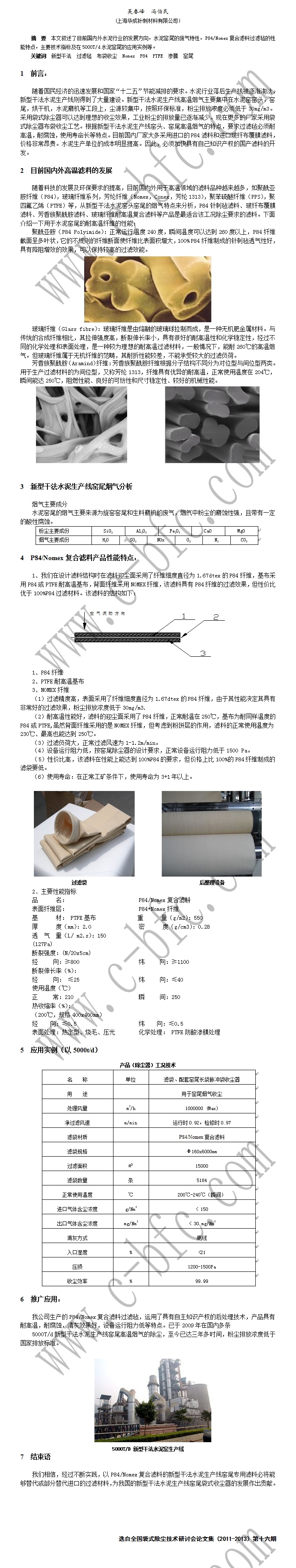 P84/Nomex复合滤料在5000t/d水泥生产线窑尾布袋收尘上的应用