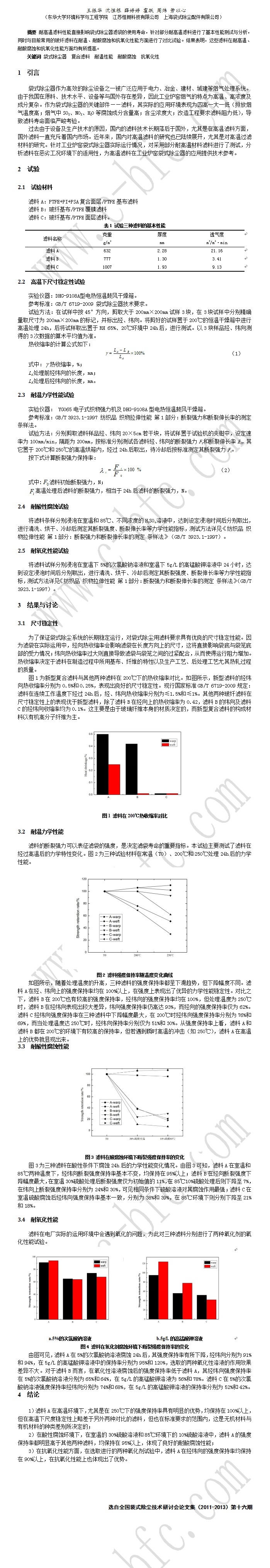 工业炉窑袋式除尘器用耐高温滤料性能的测试与分析