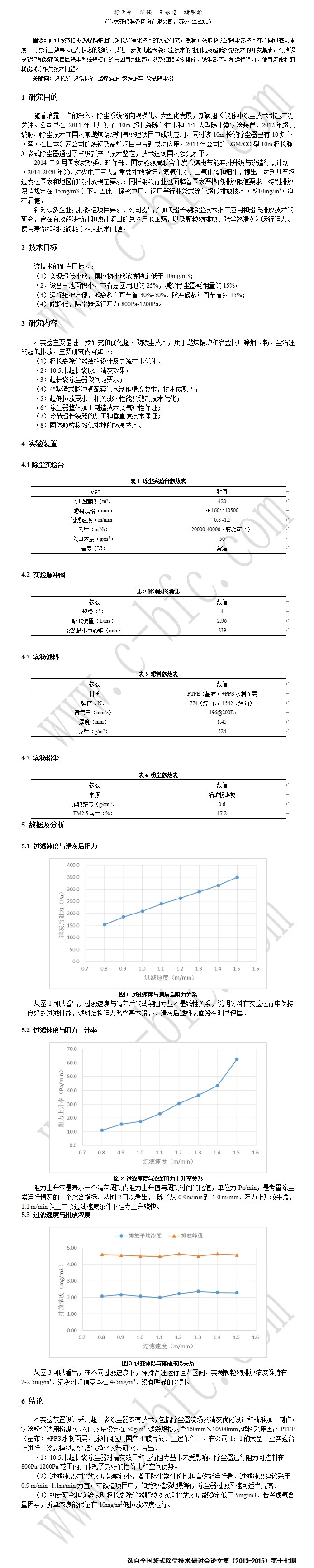 超长袋除尘器超低排放技术实验研究