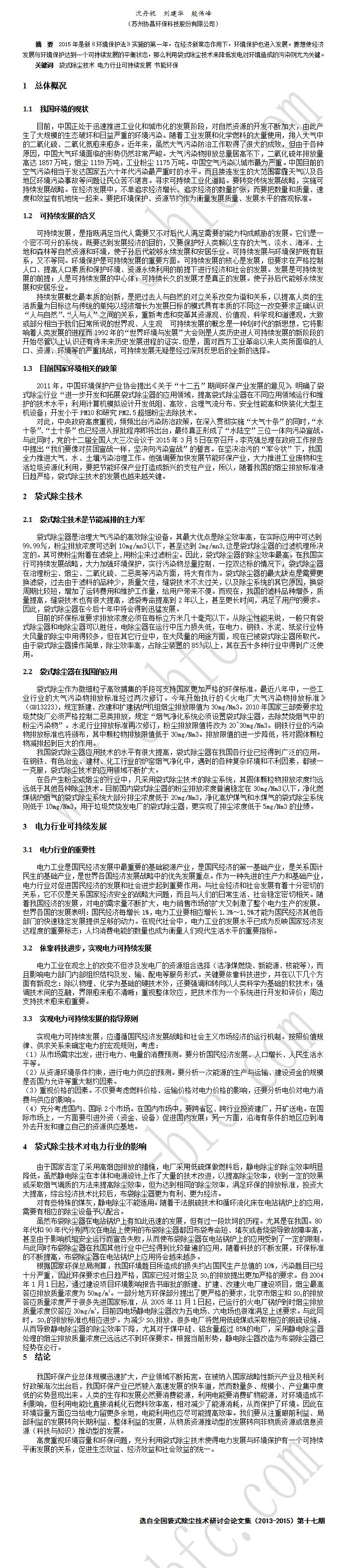袋式除尘技术与电力行业可持续发展