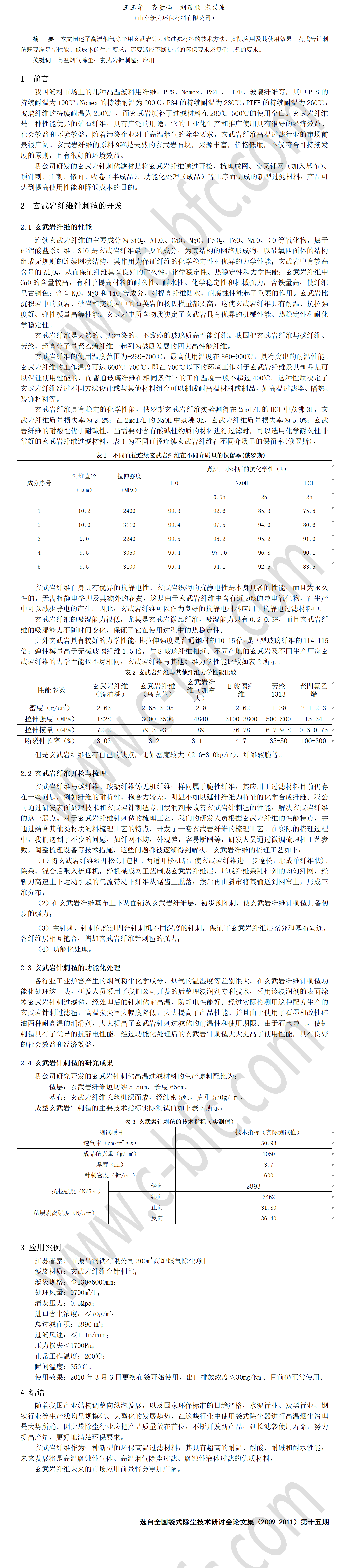 高温烟气除尘用玄武岩针刺毡滤料的开发及应用