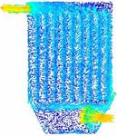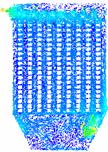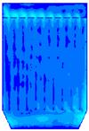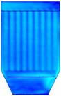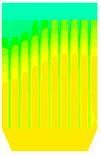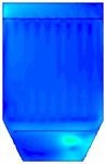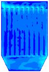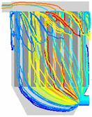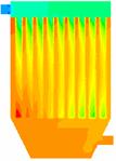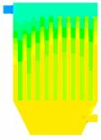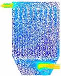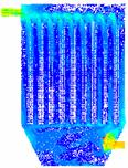 图18为对100颗燃煤烟气中粒子的随机跟踪图,和生物质烟气相比相同的是仍是在下箱体的中间部分大小颗粒分成了两部分,大颗粒主要分布在了左侧,小颗粒分布在了右侧,但不同的是有部分大颗粒在中间区域也发生回旋经反方向向上运动了。大小颗粒也是在整个除尘器内发生回旋,能和布袋充分接触,利于被布袋收集。