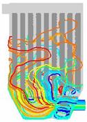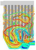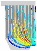 图17 与对称面平行截面上速度矢量图图 图18 燃煤烟气除尘器内颗粒轨迹图
