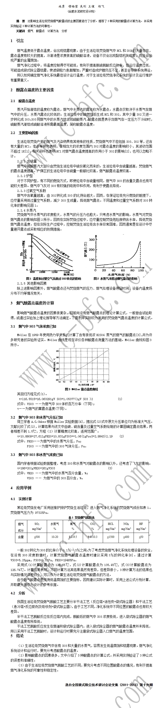 生活垃圾焚烧烟气酸露点的计算方法和分析