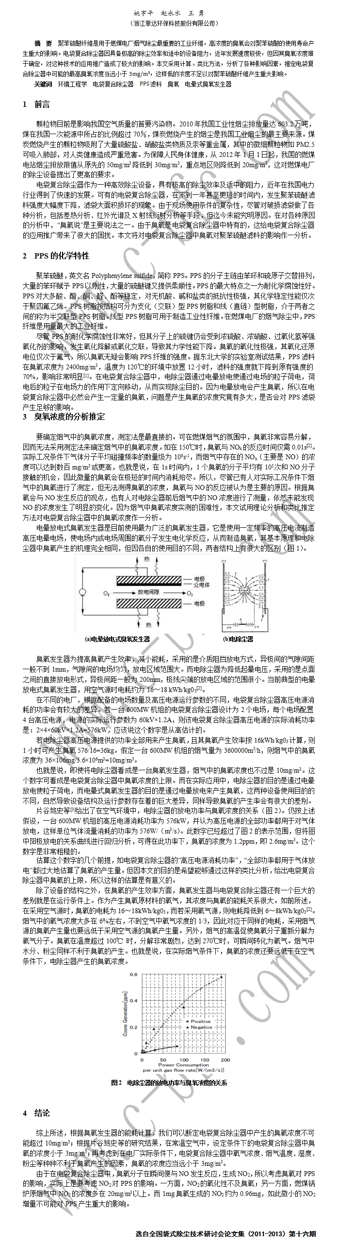 电袋复合除尘器中臭氧浓度之分析