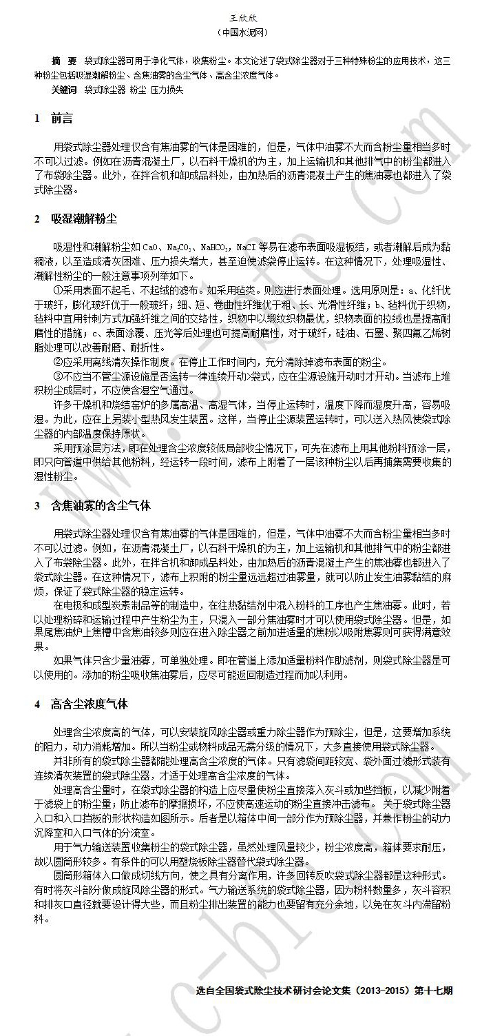 袋式除尘器在处理特殊粉尘中的应用技术