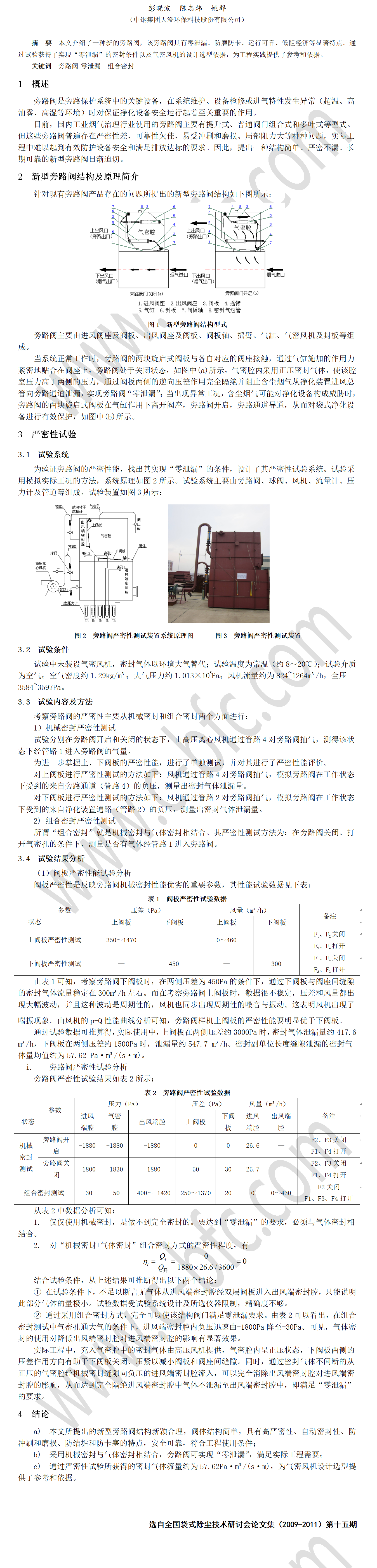 零泄漏袋式除尘器旁路阀的开发与试验研究