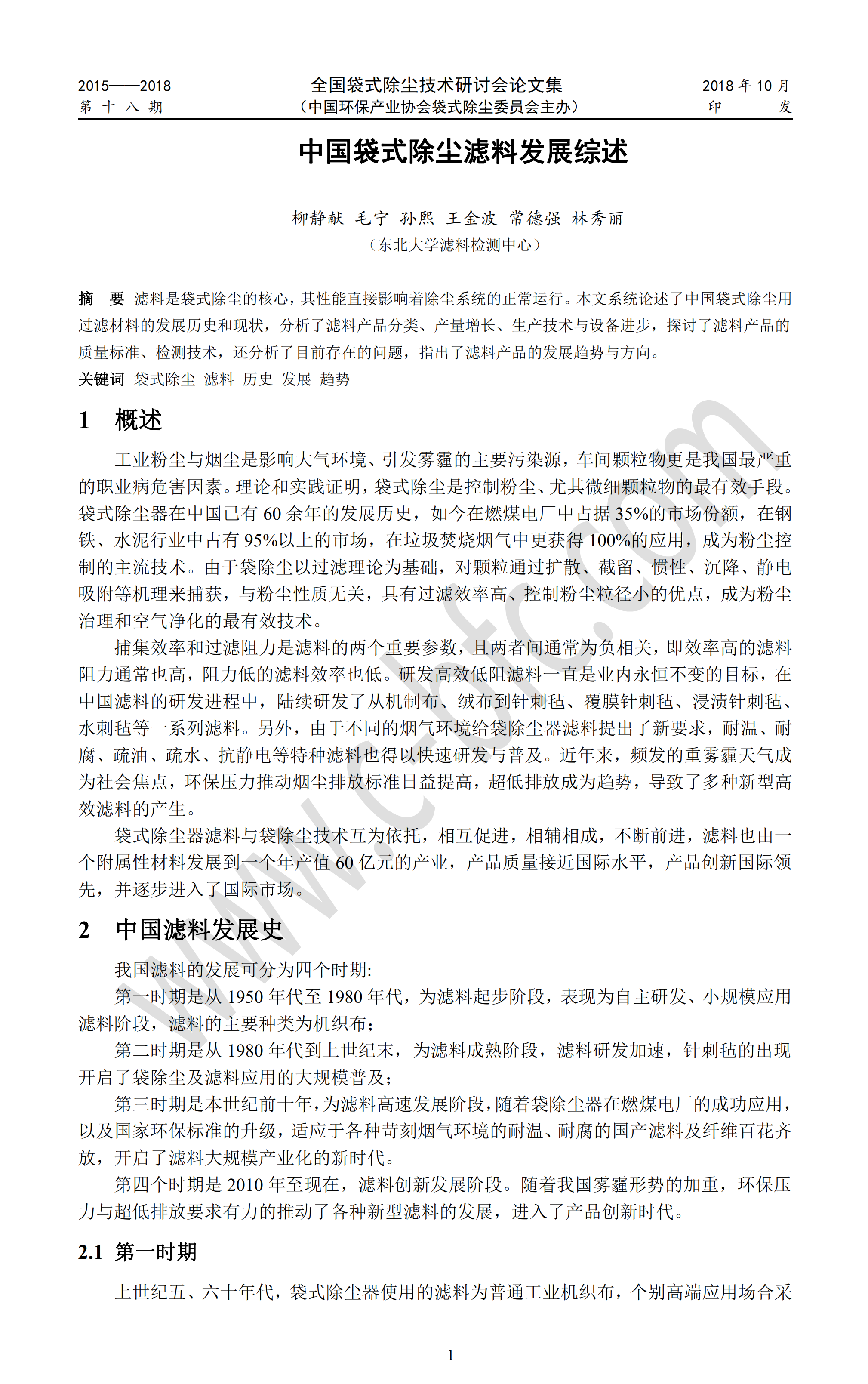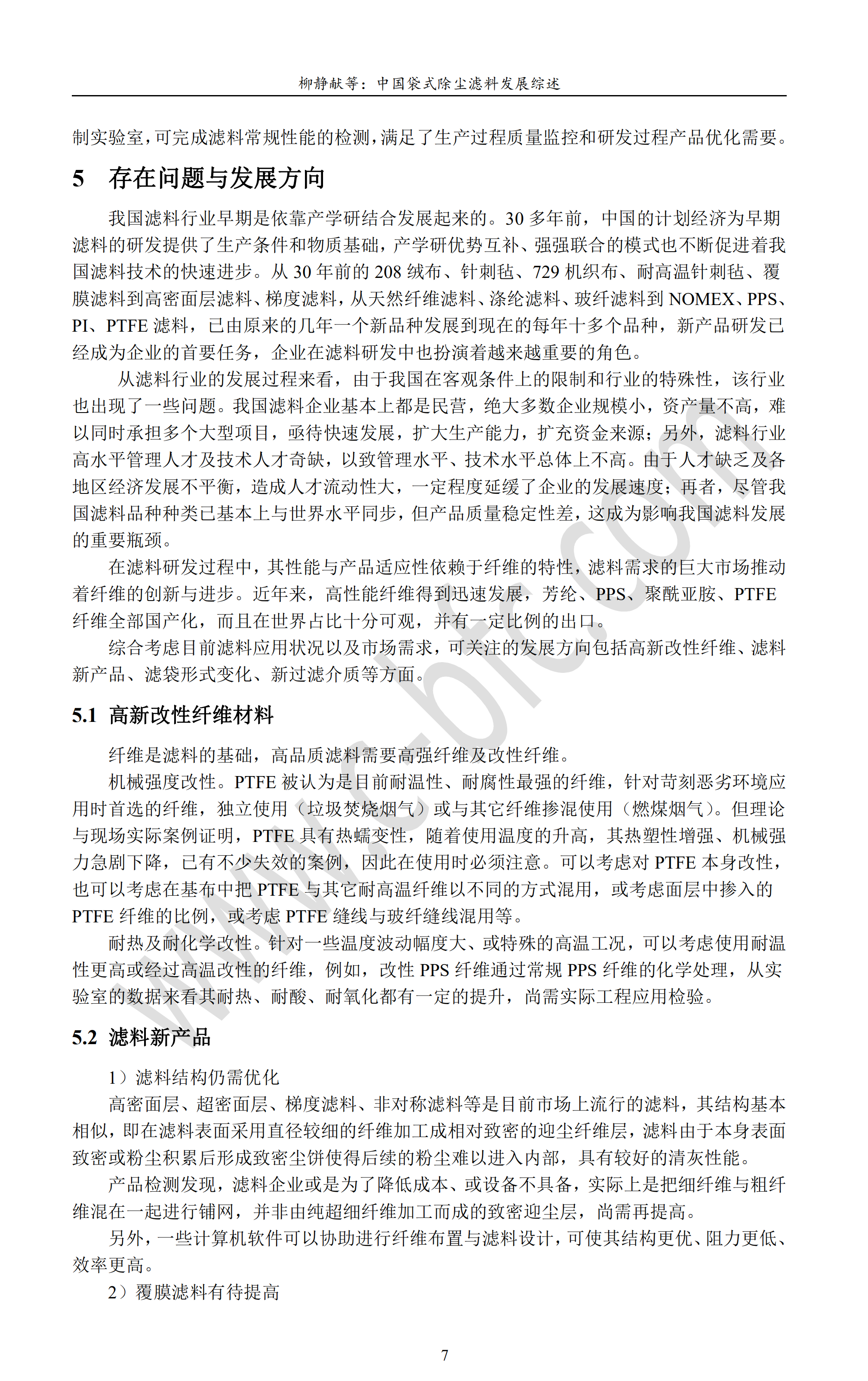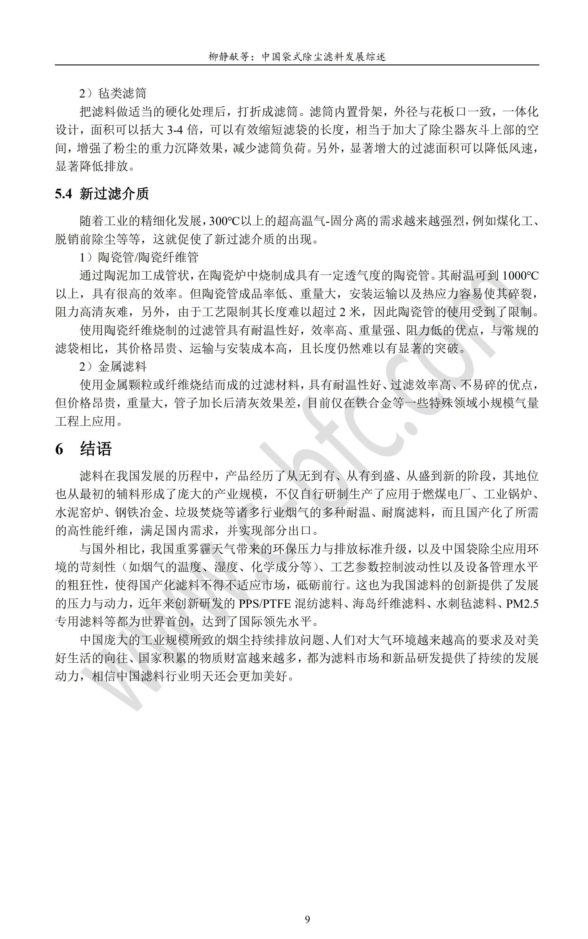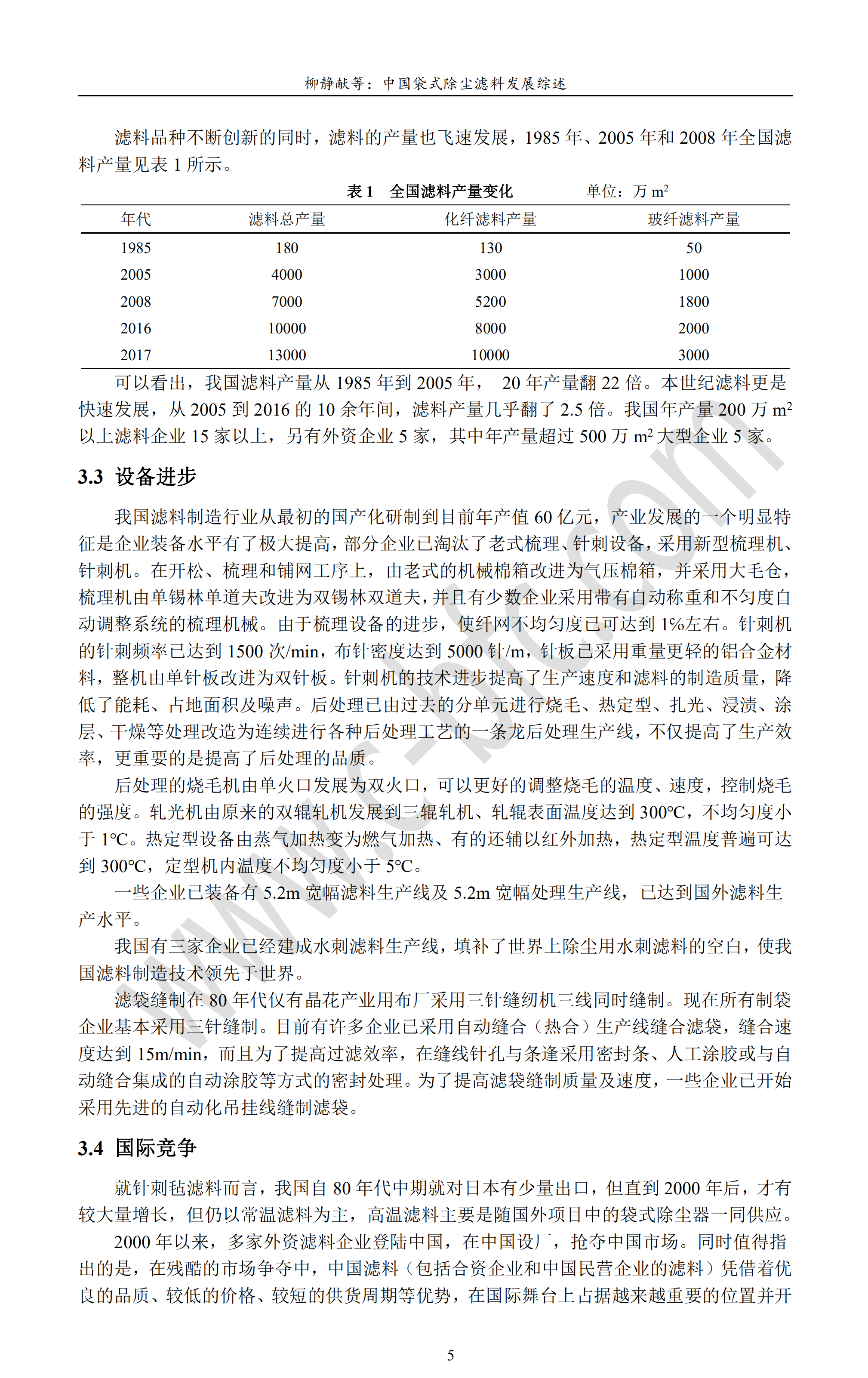 中国袋式除尘滤料发展综述