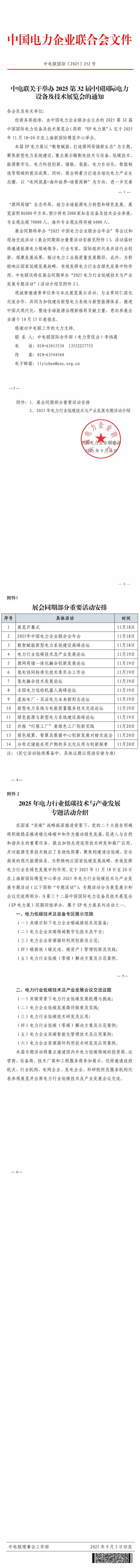 中电联关于举办2025第32届中国国际电力设备及技术展览会的通知-暨关于举办 2025 年电力行业低碳技术与产业发展专题活动的通知